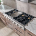 • Six High-Powered Burners: The rangetop features six robust propane burners, providing a wide range of heat options, from high heat for searing to low simmering for delicate sauces.
