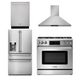 This premium Thor Kitchen appliance package is complete with a Professional 36" Gas Range, 36" Wall Mount Range Hood, 24" Dishwasher and 36" French Door Refrigerator with Water and Ice Maker In-Door.