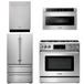 This Thor Kitchen appliance package is complete with a Professional 36" Gas Range, 36" Refrigerator, 24" Dishwasher and 24" Microwave Drawer.