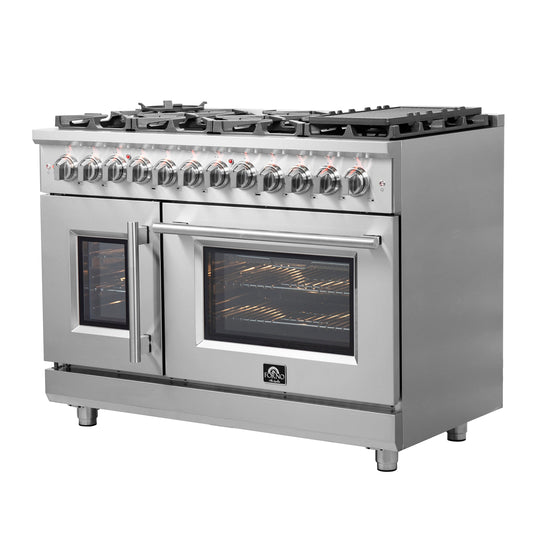 Forno 48″ Freestanding French Door Gas Range with 8 Burners, FFSGS6439-48