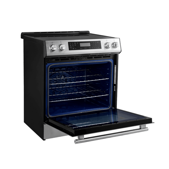 Forno Espresso 30" Induction Range with Air Fry and Self-Clean in Stainless Steel and Silver Handles | Antique Brass Handles, FFSIN0905-30