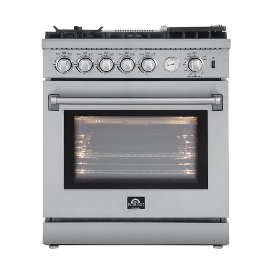 Forno 30" Gas Burner, Electric Oven Range With French Door in Stainless Steel, FFSGS6356-30