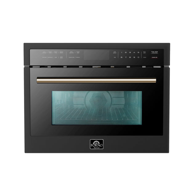 Forno Espresso 24" Built-In Microwave Oven in Black with Antique Brass Handles, FMWDR3093-24BLK