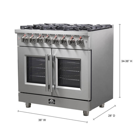 Forno 36″ Freestanding French Door Dual Fuel Range with 6 Burners, FFSGS6325-36