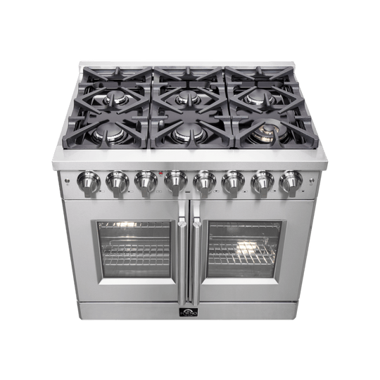 Forno 36″ Freestanding French Door Gas Range with 6 Burners, FFSGS6439-36