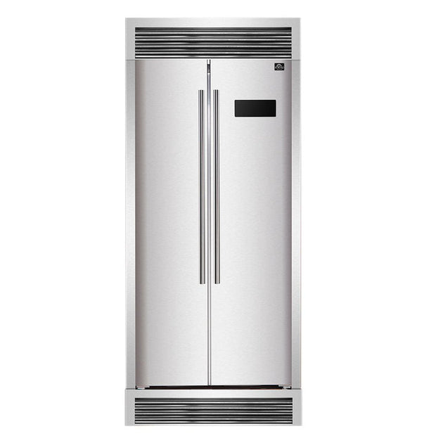 Forno Salerno 33" Side-by-Side 15.6 Cu.Ft. Stainless Steel Refrigerator with Modern Trim Kit (FFRBI1805-37MG)