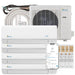 A: The package includes 4 indoor units, 1 outdoor unit (pre-charged with refrigerant for up to 100 ft.), 4 installation kits, remote controls, Alexa smart USB kit, wiring harness, manuals, and warranty coverage.