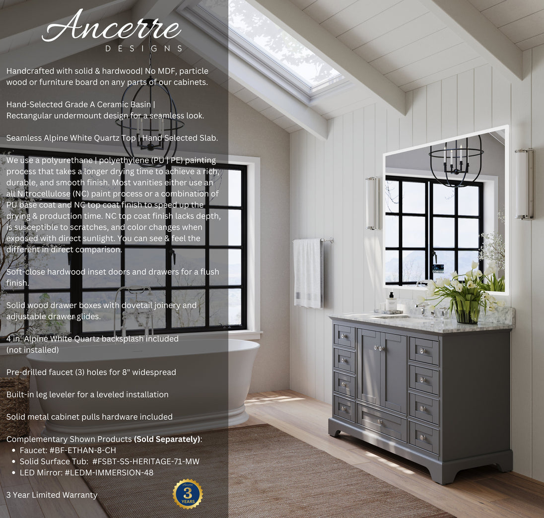 - Vanity Dimensions: 48” W x 22” D x 34.3” H