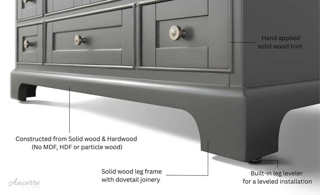 Enhance your bathroom with the Ancerre Audrey Bathroom Vanity – a timeless, handcrafted masterpiece that exudes grandeur, sophistication, and durability.