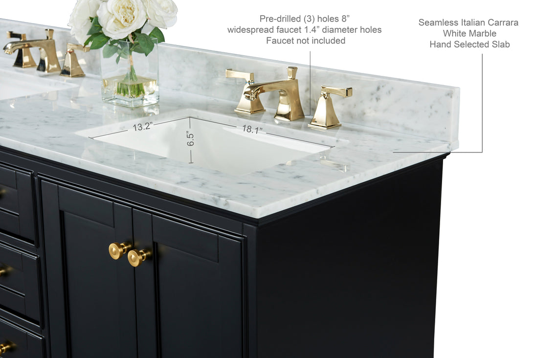 | Number of Sinks: | 2 | Countertop: | Italian Carrara White Marble |