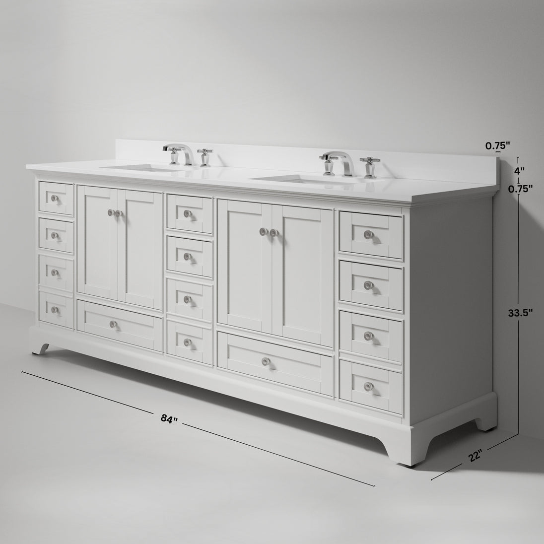 - Vanity Dimensions: 84” W x 22” D x 34.3” H