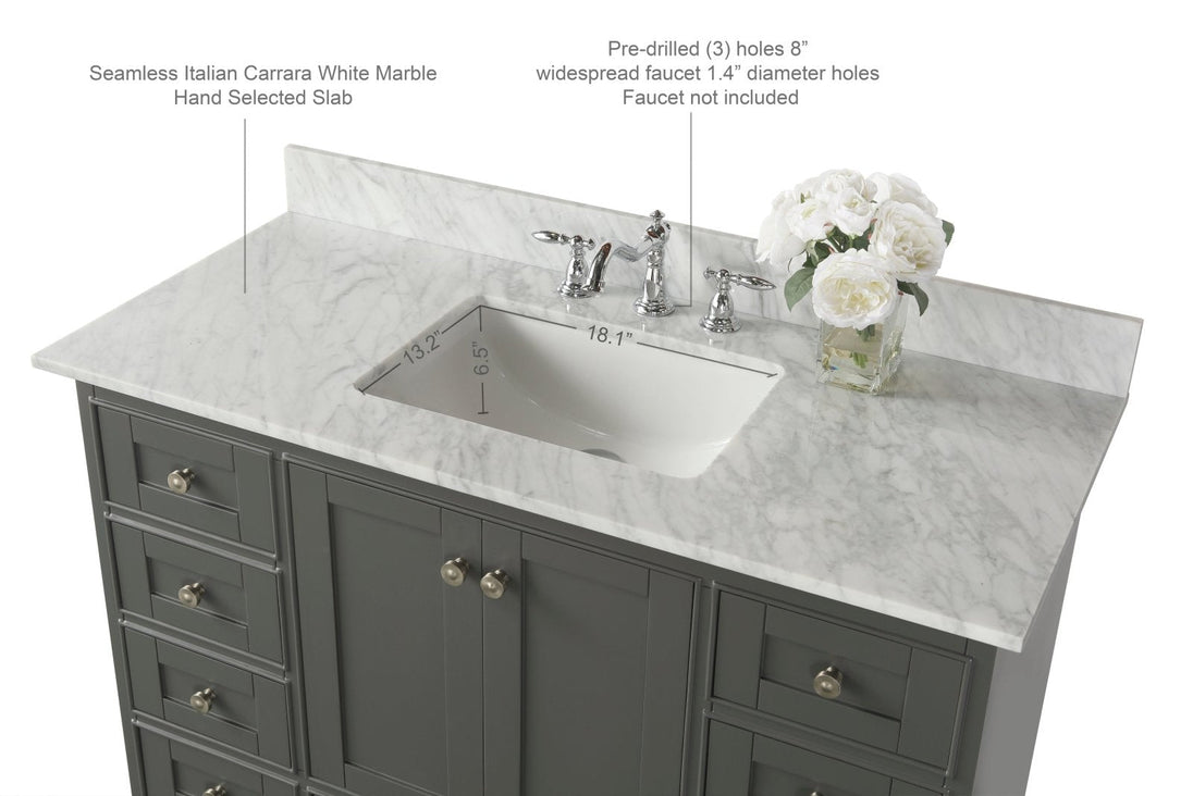 - Countertop Options: Italian Carrara White Marble or White Quartz