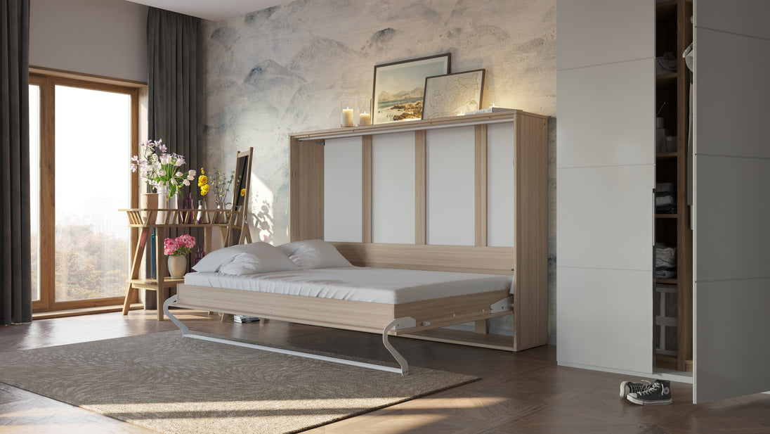 Maximize your living space with the BRESCIA Full XL Horizontal Murphy Bed, a premium space-saving solution crafted in Europe.