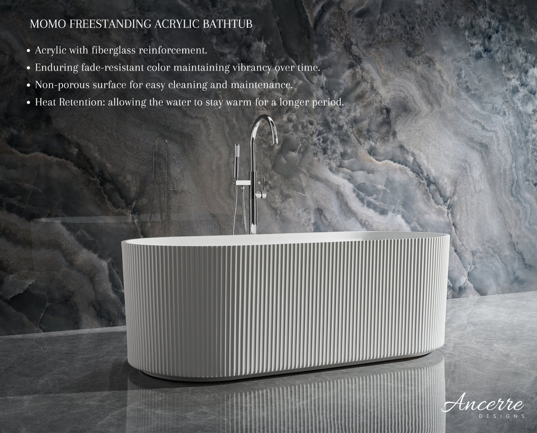 The Ancerre Designs Momo Freestanding Acrylic Bathtub offers a sophisticated blend of luxury, durability, and exceptional design. With its elegantly fluted lines and seamless matte finish, the Momo bath is a standout piece for any modern bathroom. Whether you are looking to add a touch of luxury to your bathroom or enjoy a deep, immersive soak, the Momo bath provides unparalleled comfort and style.