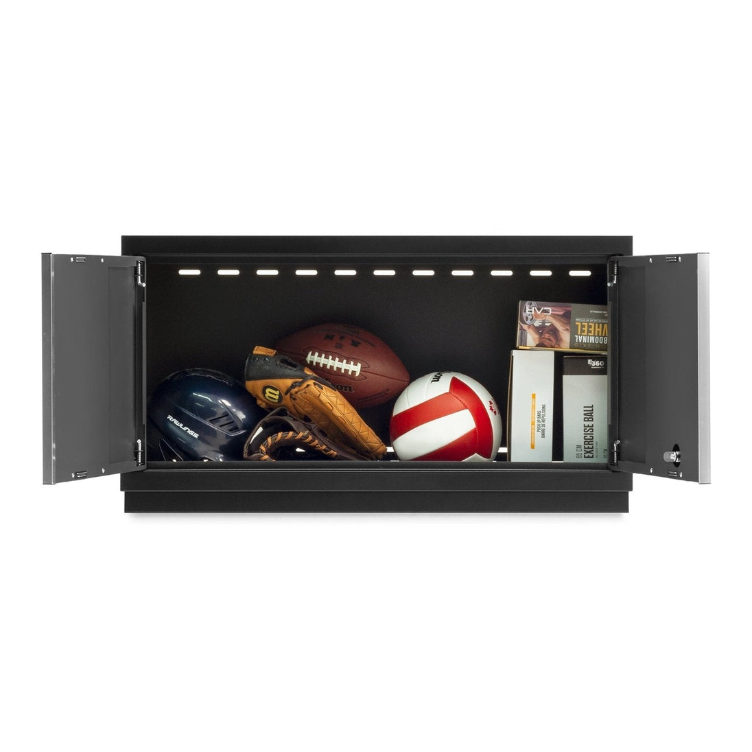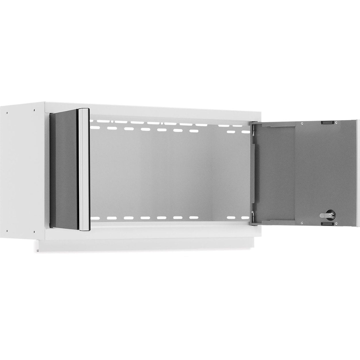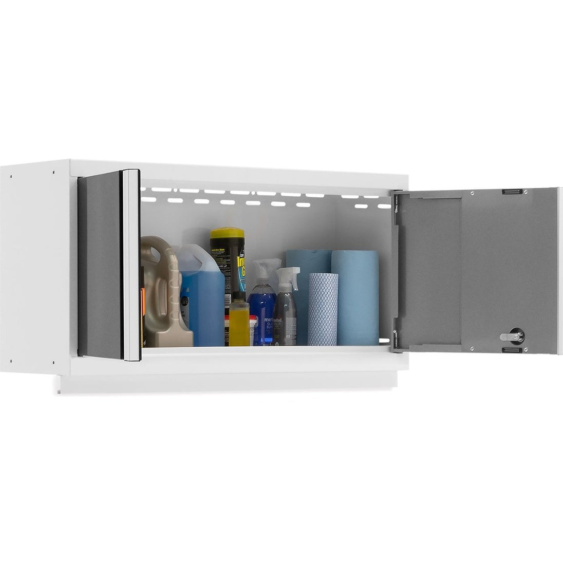 Maximize the wall storage space in your garage while keeping your gear organized with the Bold Series 36 in. Wall Cabinet. The extra-large interior lets you hold more tools, more cleaning supplies, and more gardening gear than our standard Wall Cabinets. Lockable reinforced steel doors feature integrated full-length handles for a modern look that offers more clearance in front of the cabinet. This welded steel cabinet supports up to 100 lbs. of weight with a durable paint finish that protects against scuffs and wear. Available in multiple color options, the 36 in. Wall Cabinets can be used as a standalone unit, or combined with base cabinets and lockers to build a customized garage storage solution. The included light valance allows you to neatly hide undermount LED Lighting, for a fully illuminated workspace. (LED Lighting sold separately)