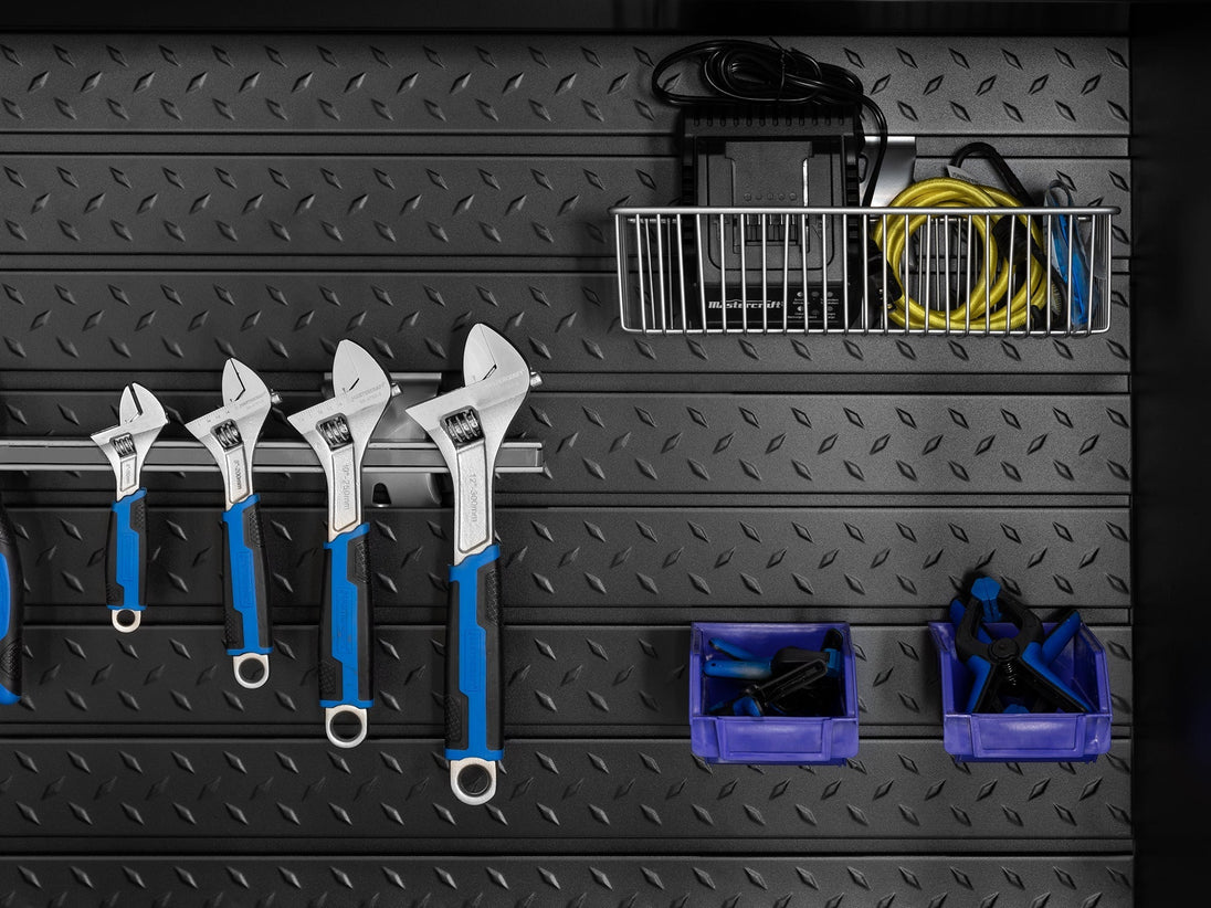 Upgrade your premium cabinet set with an Diamond Plate Silver Slatwall Backsplash, for a unique look and added utility. High-strength, durable steel panels outperform lightweight plastic PVC alternatives. Hold our Slatwall Backsplash in your hands, and you’ll understand the difference that quality materials can make. Custom-fit to our Pro Series 3.0 and Performance Plus Series 2.0 cabinet systems, the Slatwall Backsplash spans perfectly across base cabinets, fitting snugly between your worktop and wall cabinets. Designed with hidden fasteners and a magnetic top finishing strip for a simple install and seamless look, adding our Slatwall Backsplash to your workspace is the quickest way to add visual impact to your space. The powder coat paint finish protects from rust and stains and is easy to keep clean, and the Diamond Plate pattern adds an impressive texture, tailored to those who want the best looking garage on the block.