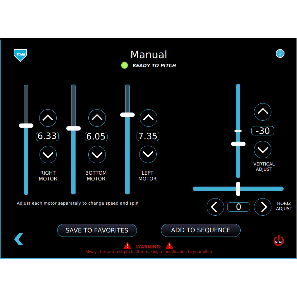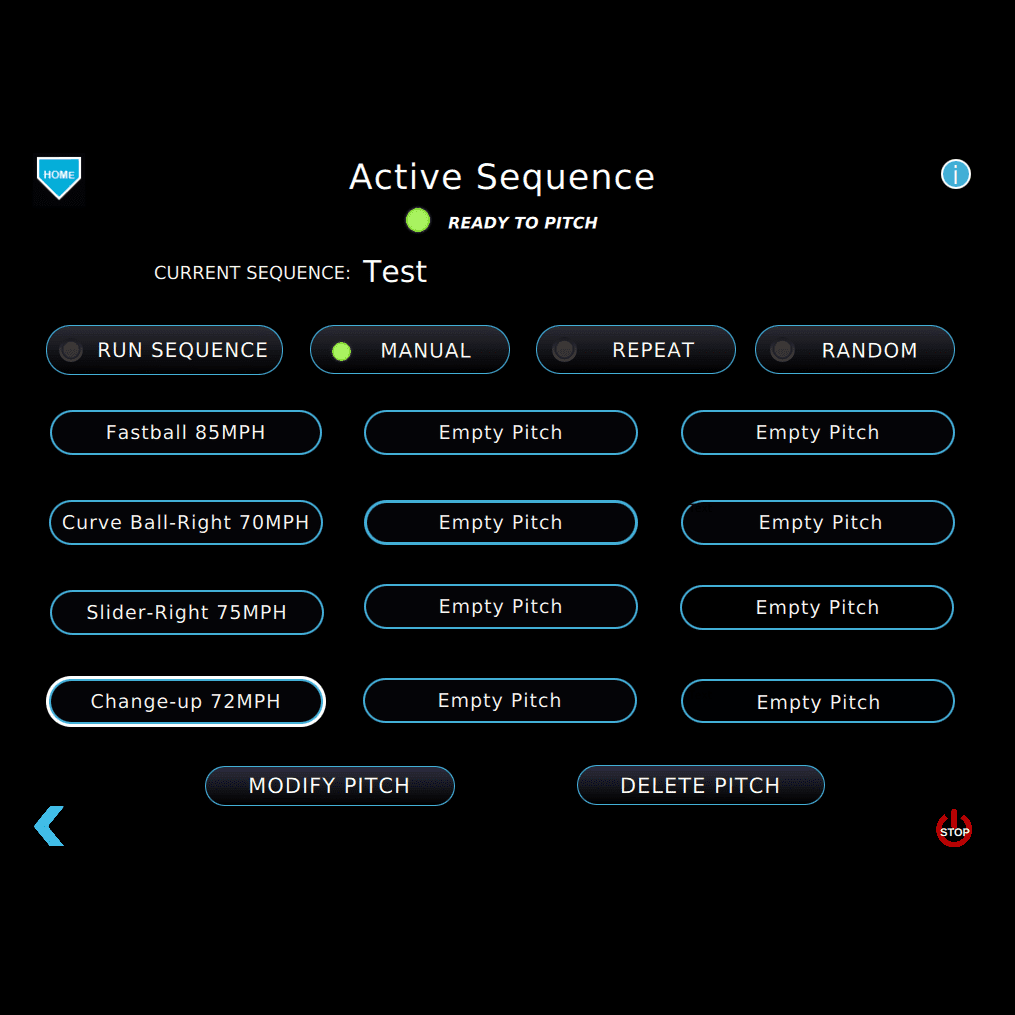 • A sequence of pitches (up to 10 per sequence) can be quickly saved and accessed on your favorite sequences screen so you can challenge the mechanics of any hitter or replicate a specific pitcher.